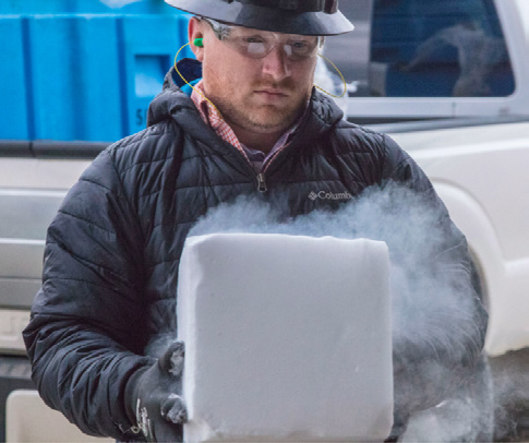 • Worden geproduceerd door droogijs te schaven (uit pellets, blokken of platen)